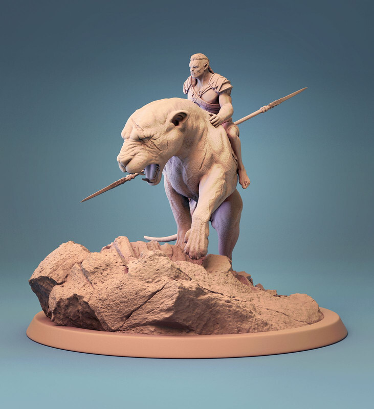 Орк Полуорк Воин Паладин Варвар Файтер Рыцарь на Пантере миниатюра для dnd, днд, pathfinder, фентези, Настольная игра, НРИ, Варгейм, РПГ