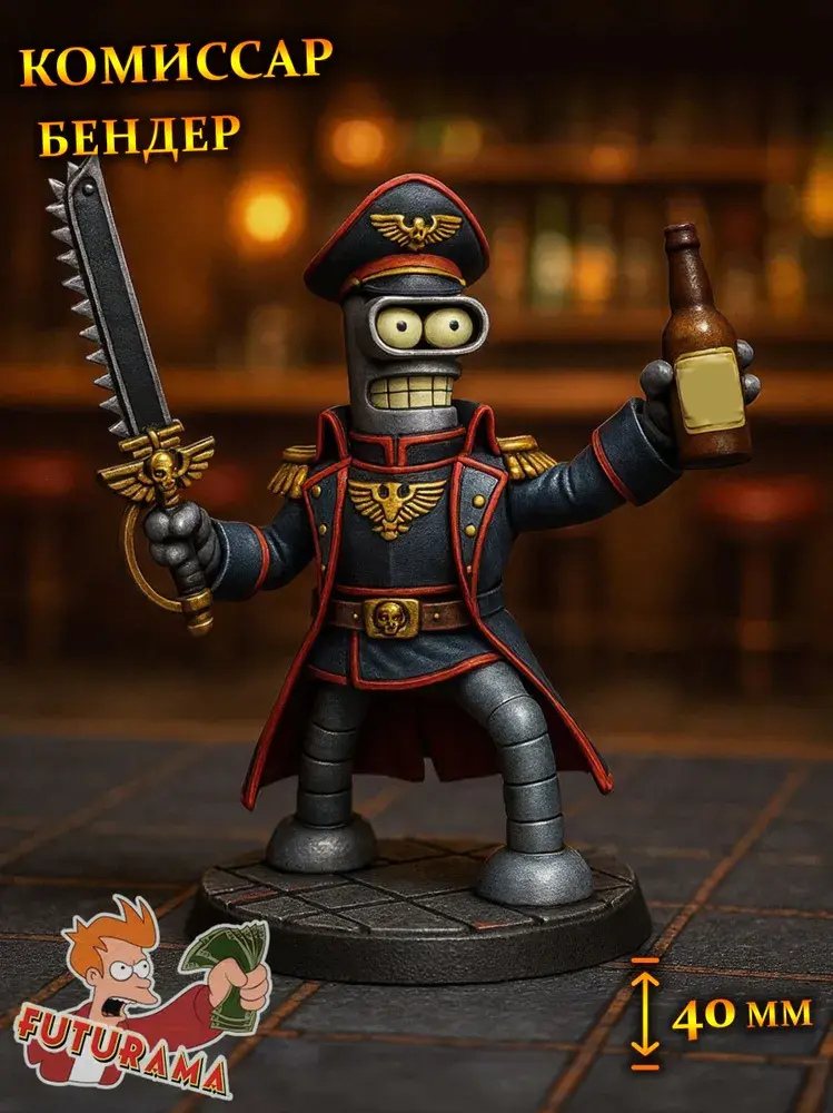 Хочешь добавить в свою коллекцию яркую фигурку для настолок? Бендер Комиссар из любимого сериала «Футурама» теперь доступен! Он станет классным дополнением к D&D, варгеймам и другим играм — оживит партии, добавит юмора и погружения. В наборе высокоточная детализированная модель высотой 40 мм, готовая к приключениям прямо из коробки. Приятный подарок фанатам футуристического юмора и любителям настольных приключений!